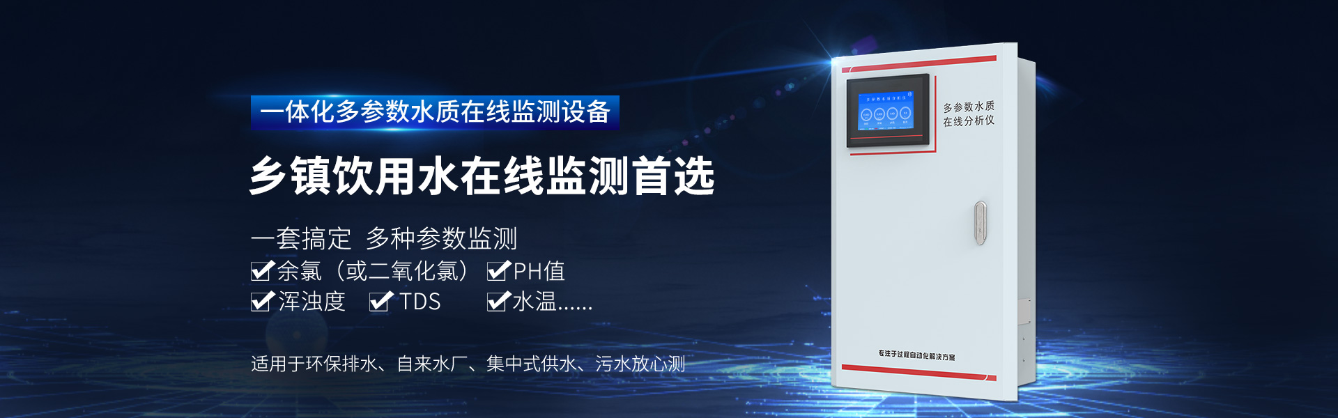 多參數(shù)水質(zhì)在線分析儀是本公司自主研發(fā)制造的新一代飲用水水質(zhì)監(jiān)測(cè)設(shè)備,該設(shè)備可廣泛用于城市或村鎮(zhèn)自來(lái)水廠、自來(lái)水輸水管網(wǎng)、自來(lái)水二次供水、用戶末梢、室內(nèi)游泳池、大型凈水設(shè)備和直飲水等水質(zhì)在線監(jiān)測(cè),是水廠生產(chǎn)過(guò)程控制、水利水務(wù)管理、衛(wèi)生監(jiān)督等領(lǐng)域必不可少的在線分析設(shè)備。